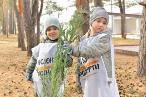 At the end of the environmental festival, the employees and their children planted juniper seedlings near the Nadezhda sports and recreation centre.