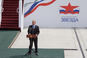 President of the Russian Federation Vladimir Putin visited Zvezda shipyard in the town of Bolshoi Kamen, Primorsky Krai, where he participated in the ceremony of sections laying for four ice-class supply vessels and commissioning heavy outfitting dock which is unique for the Russian Federation.